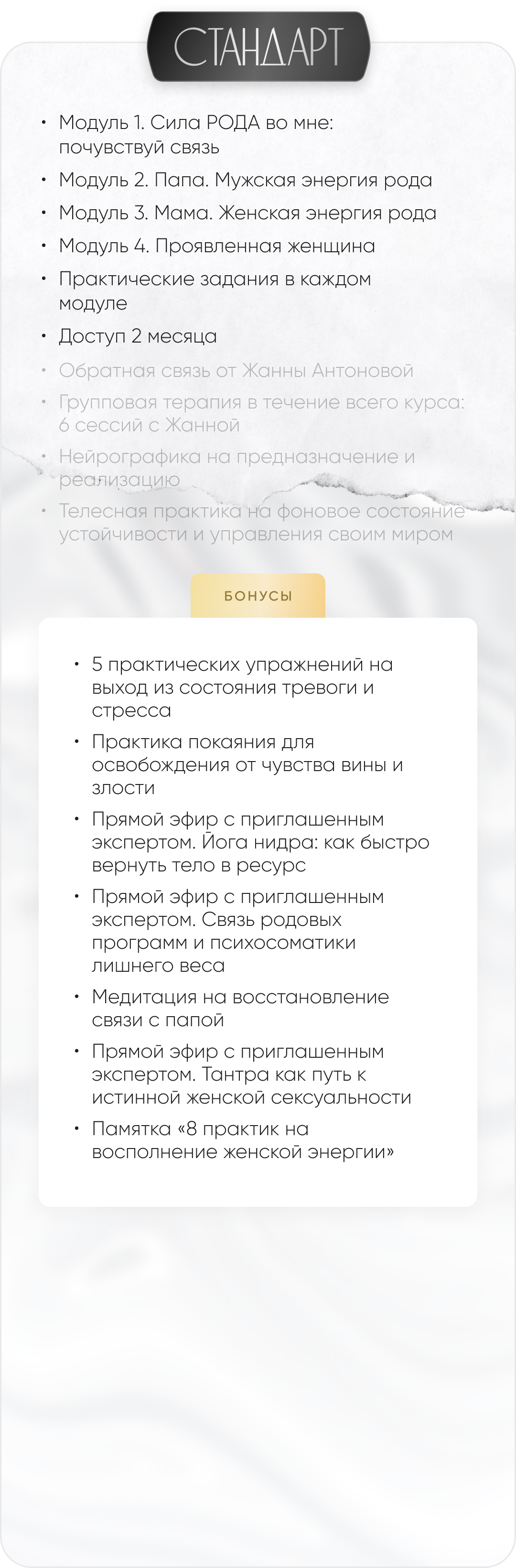 Для меня это был особенный опыт, учитывая, что я скептически отношусь к подобным курсам. Я очень благодарна тебе, Жанна! Я благодарна, что ты есть в моей жизни, и у меня есть возможность получать такие знания! Моя жизнь изменилась в лучшую сторону! Я открыла для себя такую ценность, как СИЛА РОДА. Поняла для чего она мне дана, для чего необходимо взаимодействовать со своим родом. Трансформации на курсе неизбежны, невозможно остаться тем же человеком, которым ты был до курса! От всей души желаю каждой пройти этот курс, потому что ваша жизнь уже не будет прежней, а вы сами станете зрелой и цельной личностью. Можно ныть и жаловаться, что у вас в жизни все плохо. Можно довольствоваться стабильностью в жизни. Но это тоже не есть хорошо. Нужно всегда идти вперед. В первую очередь из любви к себе. И во-вторых ради наших детей и их будущего.
